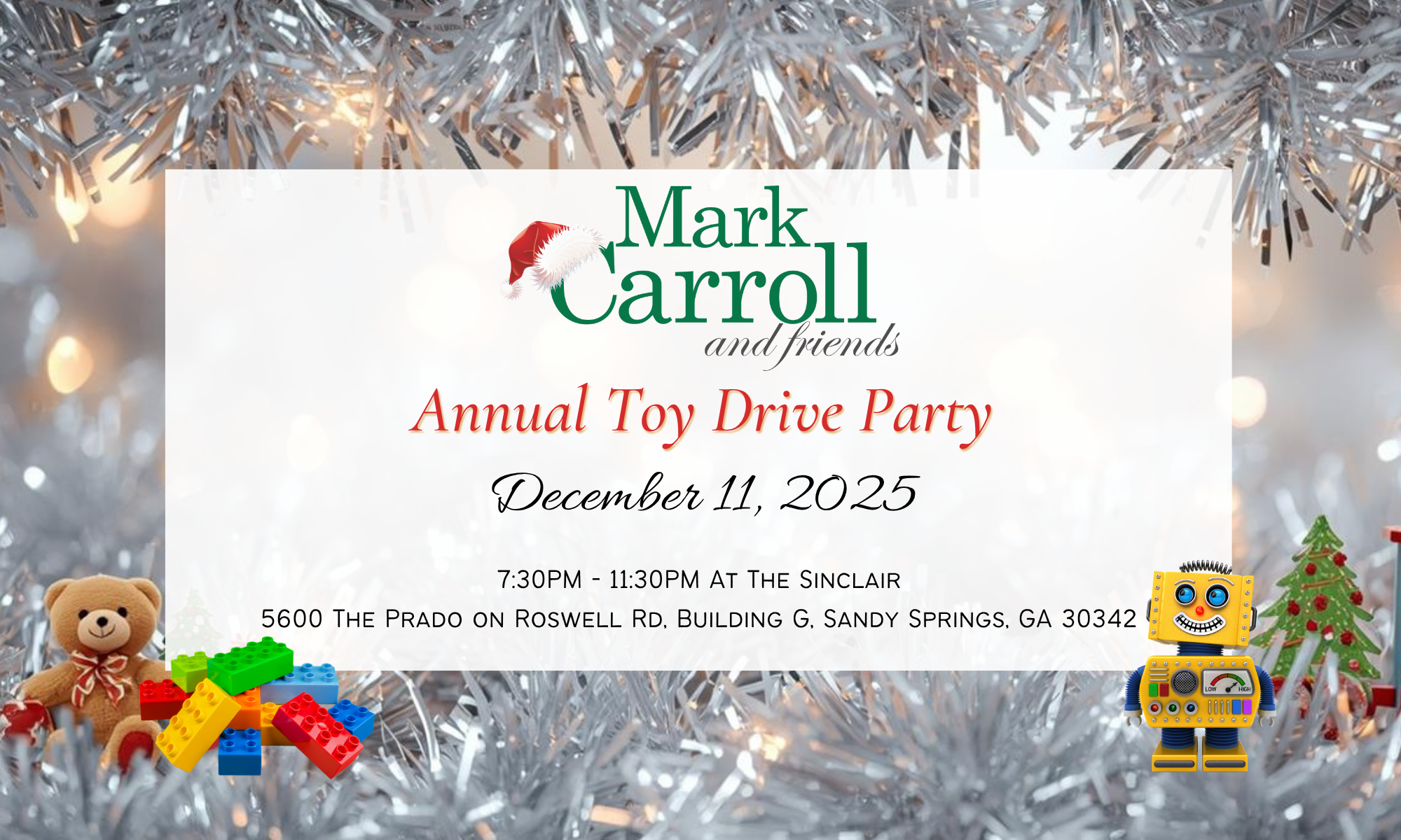 During an intimate dinner party in 2003, where Mark requested each guest bring a toy to donate to a local toy drive, the inspiration for Mark Carroll and Friends Charity was planted. Each year the dinner party invitation list got larger and the toy donations multiplied. Quickly, Mark realized the generosity of his community needed to be met with a trusted source for distributing their kindness, hence, the Mark Carroll and Friends Charity was realized and established as a 501(c3) in 2012. Over 17 years now, additional annual events – including a black-tie event to raise monies for after school programs, funding for teachers to apply towards fine arts programs, school supplies, as well as educational scholarships – have been established to expand the charity’s reach within the Atlanta community.